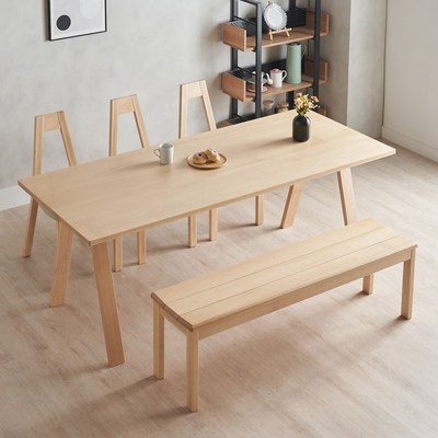 [에보니아] 이네스 비취원목 6인 식탁세트 C형 (6인테이블+의자3개+3인벤치1개), C형(6인테이블+의자3개+3인벤치1개)