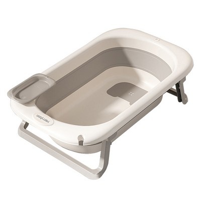 토몽 온도감지 접이식 유아 아기 욕조 + 등받이 세트 디지털 온도계, 그레이