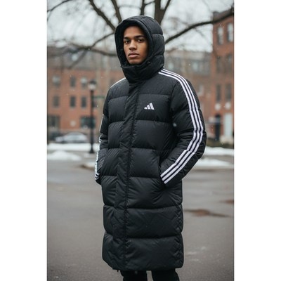 아디다스 남성 여성 공용 겨울 방한 후드 3S 롱 코트 다운패딩 자켓 레귤러 핏