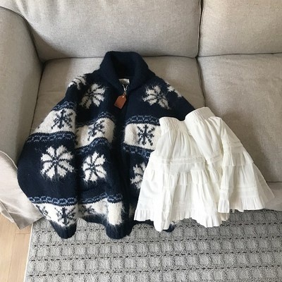 눈송이 노르딕 오버핏 집업 니트 가디건