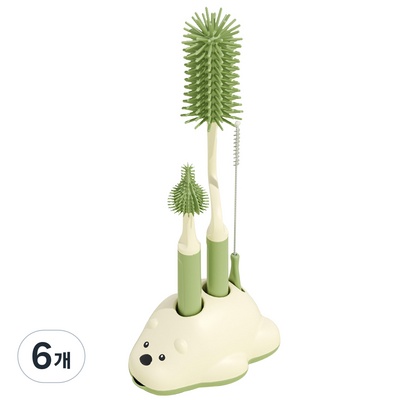 다나몰 회전형 젖병솔 + 젖꼭지솔 + 빨대솔 3종 + 거치대, 그린, 6개