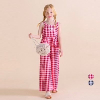아이러브제이 여아용 리스틴 체크 민소매 상하 세트