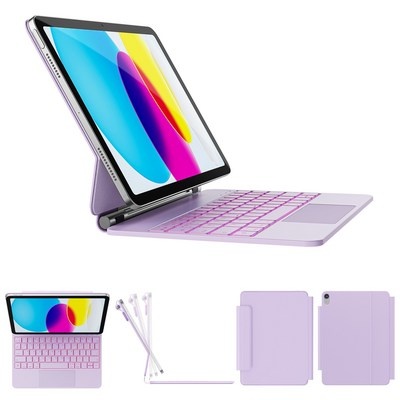 한국형 매직 키보드, 아이패드 10세대 / 아이패드 11세대 (A16)용, 11색 백라이트 키+트랙패드, 방오염 가죽, 퍼플, 1개