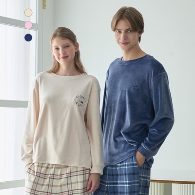 애니바디 남여공용 커플잠옷 밍크 스판 극세사 스누피 자수 9부 티셔츠 ANLH25W91