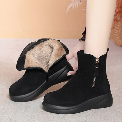 ANYOU 여자 기모 및 앵클부츠 사이드지퍼 겨울부츠 스웨이드 앵글부츠 방한부츠