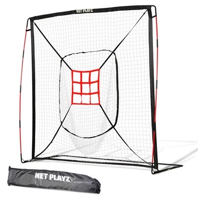 SAIVEINA 휴대용 야구연습 네트 세트 타격 및 투구용 타격 티 포함, 볼 캐디 스트라이크 존 타겟 및 휴대용 가방 야구 훈련 장비 청소년 성인 스포츠 연습, 1세트, 레드