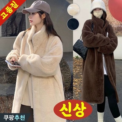 (브랜드 추천) 75kg까지 빅사이즈 여성 밍크털 차이나 두꺼운 롱 코트 가을 겨울 편한 고급 패션 이쁜 심플 독특한 스타일 날씬해보이는 뽀글이 따뜻한 보온 아우터 방한 코트