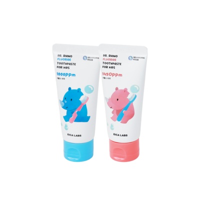 에이카랩스 어린이 유아 아기 코뿔소 치약 (청포도향1000ppm 1개+사과향1450ppm 1개 혼합), 1세트, 60ml