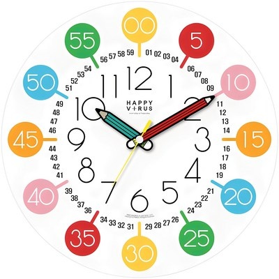 HAPPYVIRUS 어린이 무지개 연필 벽시계