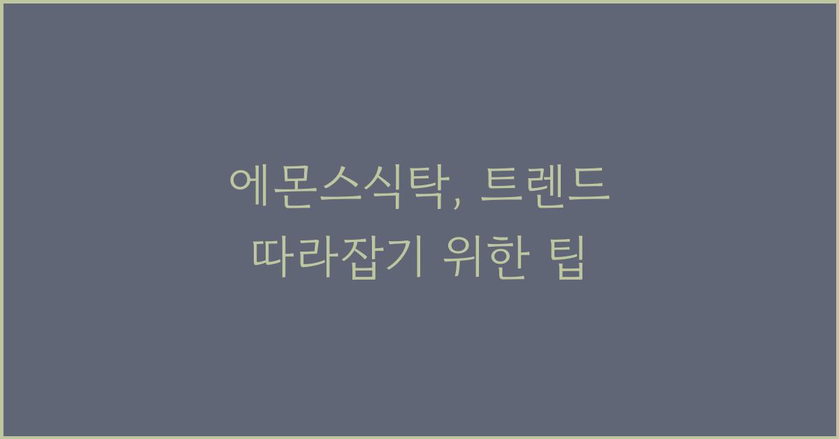 에몬스식탁은 단순한 가구가 아니라 가족의 따뜻한 기억들이 담길 공간입니다. 소중한 시간과 추억을 만들기 위해 다양한 활용 방안을 고민하는 것이 중요하죠. 트렌드에도 부합하게 디자인과 공간을 꾸미고, 관리하여 더욱 사랑받는 식탁으로 만드는 방법을 오늘 이 글에서 다뤄보았습니다. 여러분의 식탁이 더욱 빛나기를 바라며, 즐거운 공간 만들기에 꼭 도전해보세요!