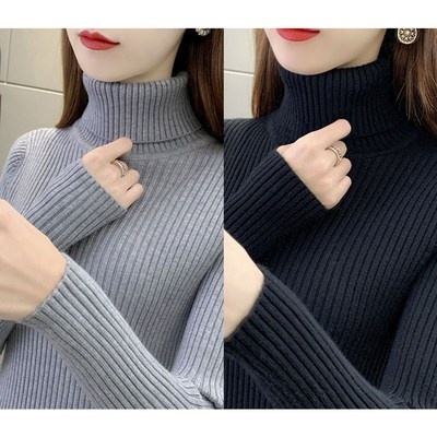 1+1 여성 목폴라 니트 스웨터 캐주얼 가을 겨울 도톰 터틀넥 상의 루즈핏 이너 니트티 기질 하이넥 니트 스웨터 2P CY