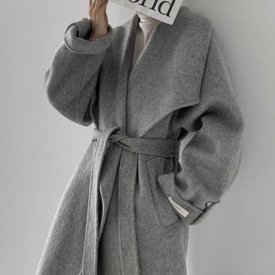 ZAJA 여성 가을 겨울 케쥬얼 루즈핏 롱 트렌치코트 고퀄리티 울혼방 울 코트