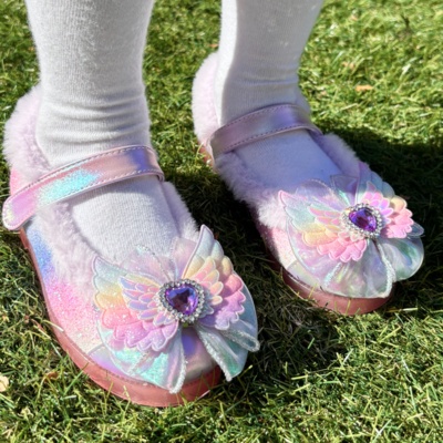 프롬베베 여아용 일리 날개 LED 겨울 털 슬립온