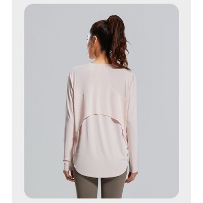 ECUPPER긴팔 요가복 상의 루즈핏 사이드 슬릿 요가 셔츠