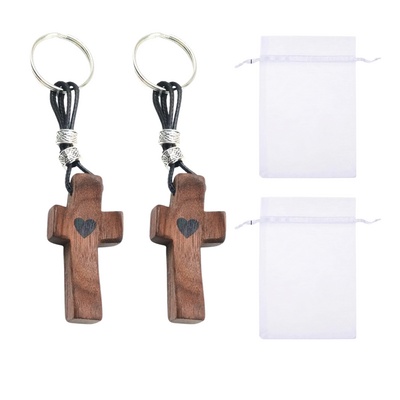 미니 원목 십자가 손기도 키링, 2개, 이미지