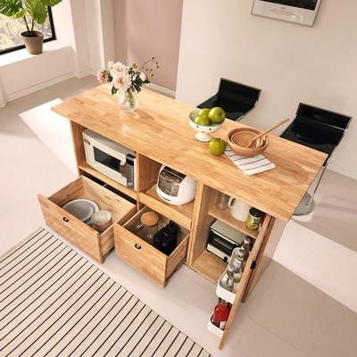 아리스타 이동식 원목 홈바 아일랜드 식탁