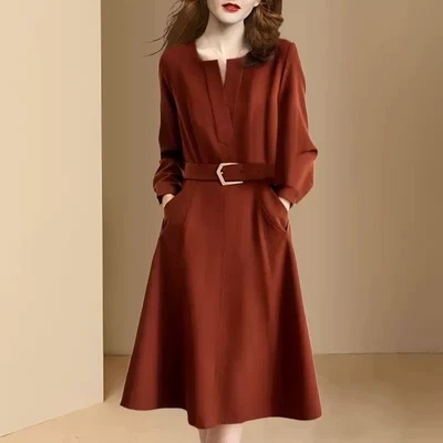 오스틱니 2025 신상 여성 봄가을 날씬해 보이는 디자인 감각 외출용 밴드 긴팔 원피스