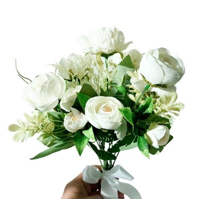 숨채움 꽃다발 조화 인테리어 스몰 웨딩 부케, 1세트, 화이트 실크플라워