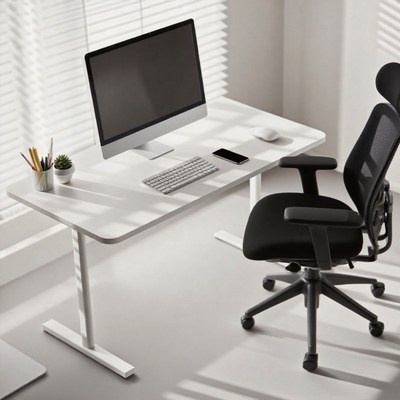 Fahomiss 모션데스그 수동 높이조절 책상 공부 사무용 컴퓨터책상 다용도 테이블, 화이트