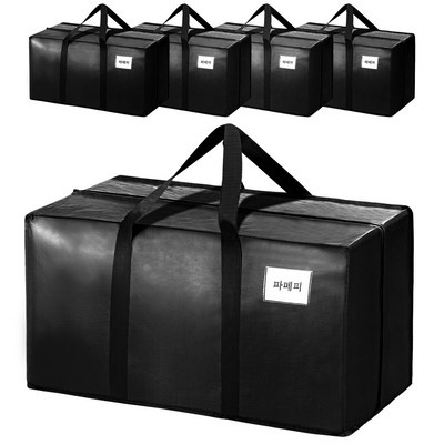 파페피 대용량 접이식 이사봉투 방수, 5개, 블랙 컬러
