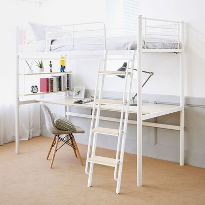 일루일루 코모드i 올인원 책상형 벙커침대 프레임 철제 수납 선반 성인 학생 2층, 아이보리