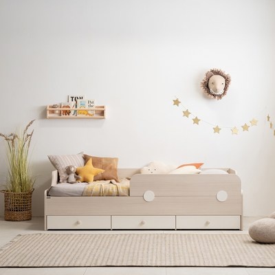 리바트 꼼므주니어 자녀가구 수납 침대 + 가드 + 매트리스 세트 방문설치, 내추럴 + 화이트