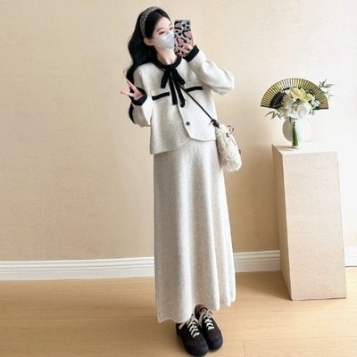 임부복 세트 캐주얼 소향풍 니트 스웨터 상의 + 루즈핏 트렌디 니트 스커트 임산부 가을 겨울 패션 트위드 투피스 SJS