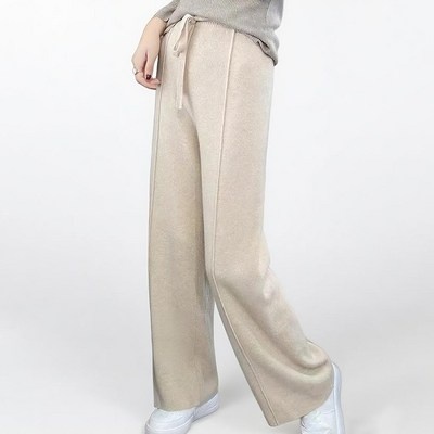 여성용 하이웨이스트 니트 와이드 팬츠 가을 겨울 보온 기분 오버핏 캐주얼 데일리 팬츠