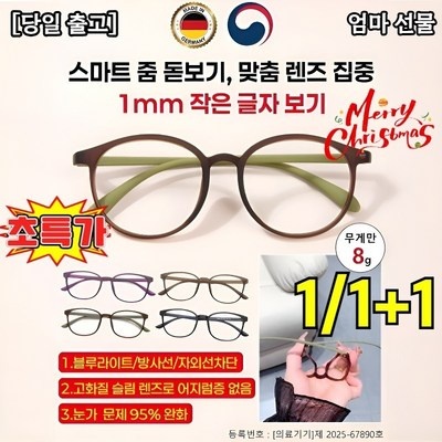 1/1+1 [당일 출고] 자동 줌 돋보기 블루라이트 차단 노안 안경테 차단/항피로