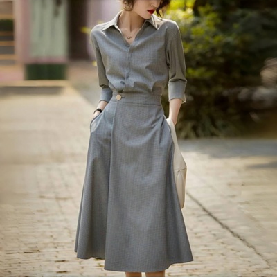 패션 반팔 정장 원피스 여성 봄여름 솔리드 오피스룩 시크 스커트 캐주얼 프리미엄 통근 조임 원피스 YMY