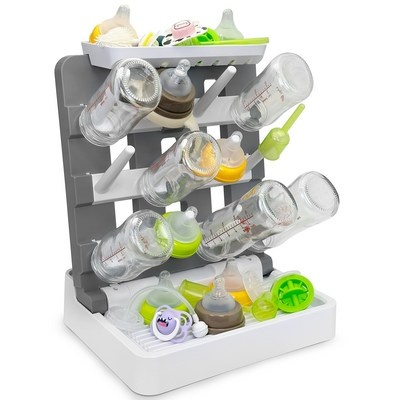 젖병 건조대, 수직 스탠딩 젖병 건조대 랙 홀더-조리대용 공간 절약형 젖병 건조대-최대 12개의 젖병 및 컵을 보관할 수 있습니다., White+Grey
