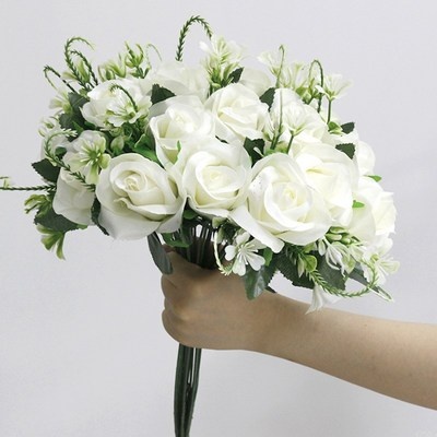 마벨인홈 조화 장미 꽃다발 18송이 세트, 화이트로즈