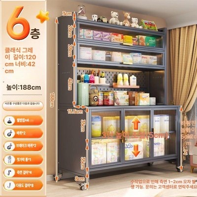 에버모스트 수납장 주방 다기능 냉장고장 틈새장 홈카페장 홈카페, 그레이6단 120cm