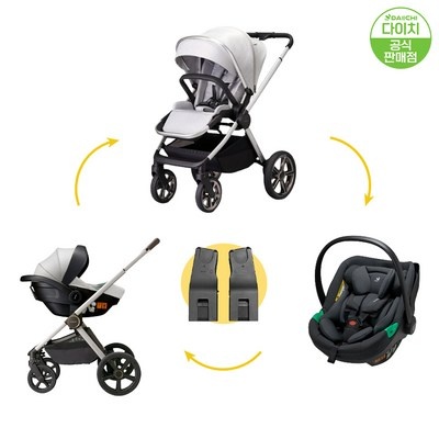 다이치 더프라임 절충형 유모차+리드픽스 바구니 카시트 세트, 더프라임유모차(펄실버)+리드픽스(블랙)