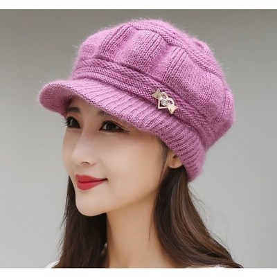 [1+1] 중년여성 하트장식 기모 니트캡 챙모자 겨울 방한 털 벙거지 할머니 아줌마모자 2개세트