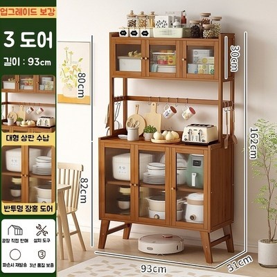 빈티지 주방 찬장 수납장 주방가구 찬장 장식장 다용도 주방수납장, 브라운+93cm 너비