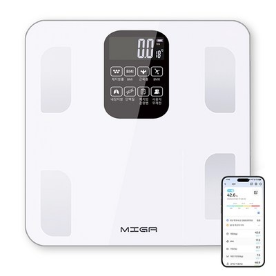 MIGA 스마트 가정용 블루투스 LCD 강화유리 인바디 체지방 체중계