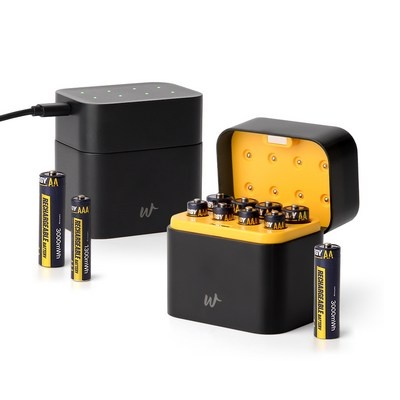휴우 8구 건전지 충전기 크래들 + AA건전지 4p + AAA건전지 4p WH-RB1 충전식 리튬 이온 배터리 장난감 건전지 재사용 충전지 C타입 충전, 1세트
