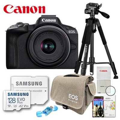 캐논 정품 EOS R50 18-45mm STM 렌즈 KIT/삼각대 패키지 8종세트/128G+EOS전용가방+MCUV필터+삼각대+카드리더기+청소도구+극세사융+액정보호필름/TJ