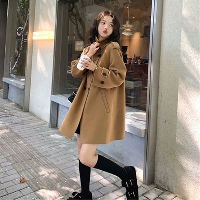 AOKADA 여성 겨울 오버핏 모직 하프 케이프 코트