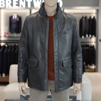 코오롱 브렌우드 프리미엄 가죽 패딩 구스다운 남자 점퍼 천연 양가죽 그레이 블랙