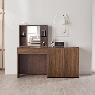 에스엘가구 화장대세트의자포함 미니 화장대 수납장, 월넛 48