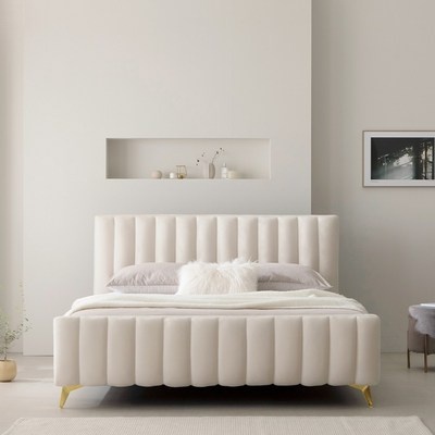 퍼니코 샤르망 앤틱 매립형 벨벳 패브릭 침대 SS/Q/K + 25cm 텐셀 포켓 필로우탑 매트리스 포함, 크림 아이보리