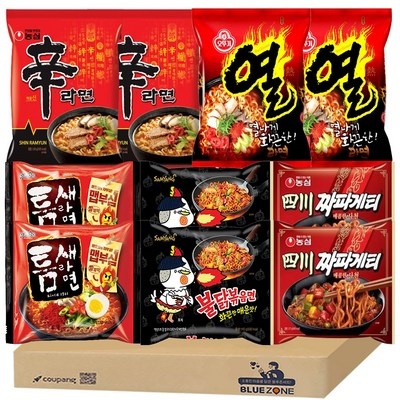 [블루존] 매콤 봉지라면 5종 세트 (신라면+사천짜파게티+틈새라면+열라면+불닭)x2