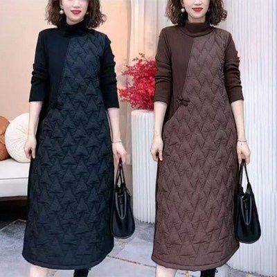 중년원피스 가을겨울 아가일 패치 보온 패딩원피스 루즈핏 경량패딩 빅사이즈 엄마옷