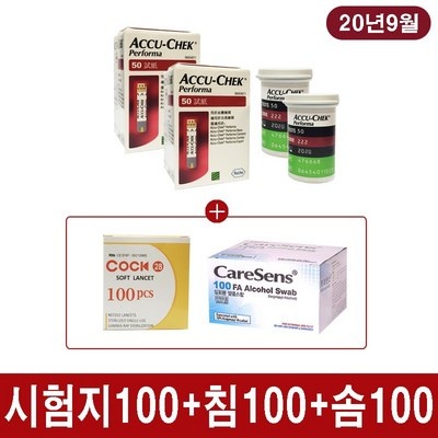 아큐첵 퍼포마 혈당측정 검사지 100p + 콕 소프트 란셋 채혈침 100p + SD 소독용 알콜솜 100p, 1세트