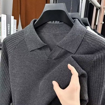 남성 가을 펀칭 브이넥 긴팔 카라 니트 티셔츠
