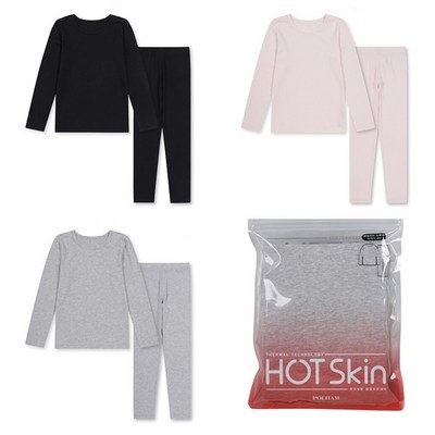 폴햄키즈 신구로점 겨울~공용 부드러운 촉감 편한 솔리드&스트라이프 핫스킨 보온내의 상하셋트8color(택1)