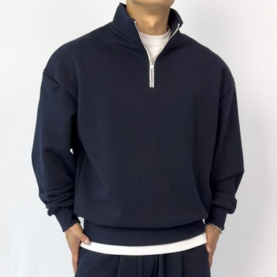Amlition 남자 빅사이즈 무지 반집업 맨투맨