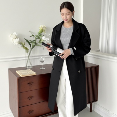 여성 미니멀핏 울100% 싱글 핸드메이드 롱코트